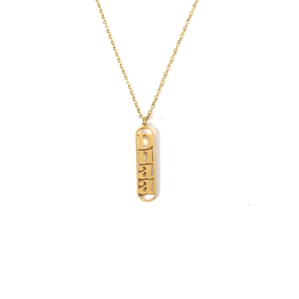اطلبي الآن واستمتعي بأناقة شخصية مع سلسال اسم طولي يصمَّم لك خصيصًا.