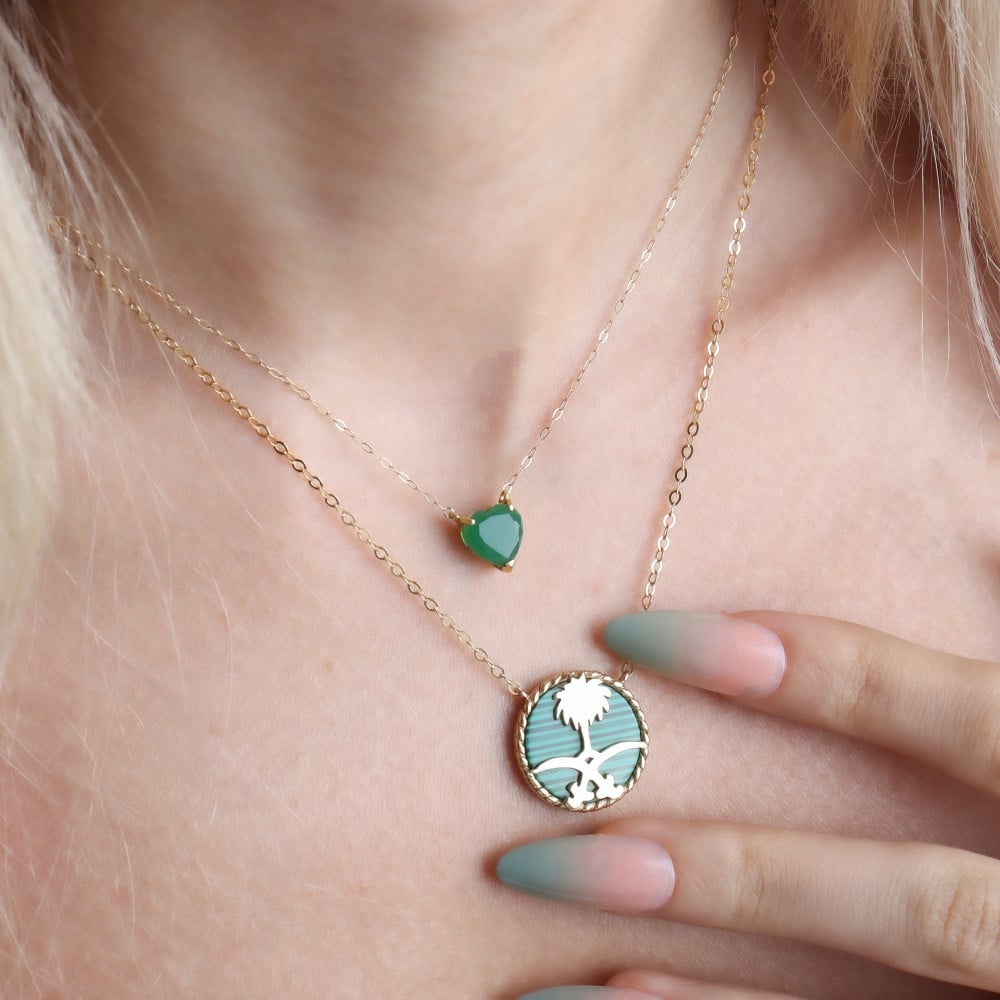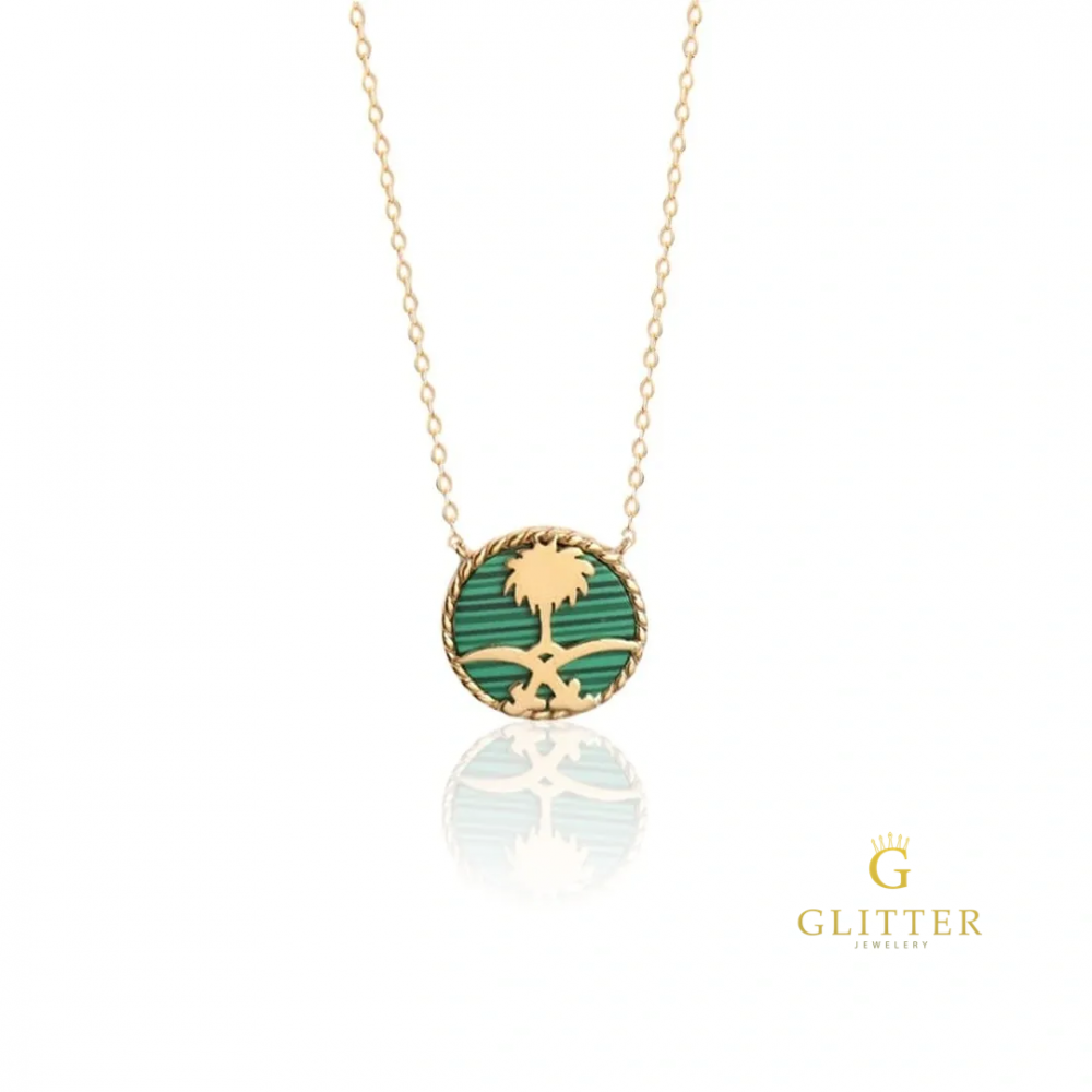 - المعدن : ذهب عيار ١٨ ، ٢١ ، فضة مطليه ذهب مع حجر الملاكيت .