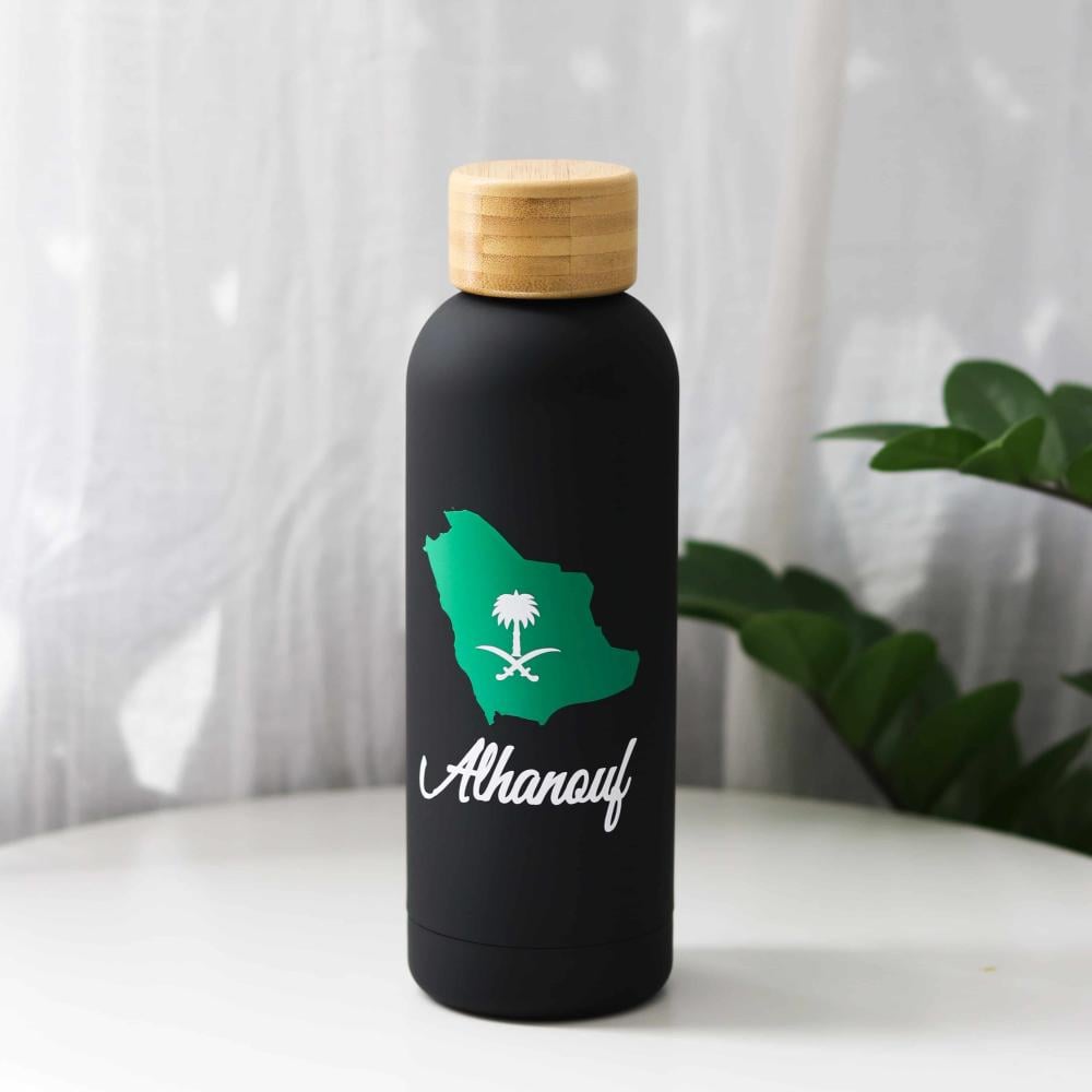 تميّزي في احتفالك باليوم الوطني مع مق خريطة المملكة مع الاسم من قليتر. تصميم فاخر يجمع بين العملية والأناقة، مصنوع من الفولاذ المقاوم للصدأ بغطاء خشبي أنيق، ليمنحك تجربة شرب مميزة تعبّر عن حبك للوطن وتُظهر اسمك بأسلوب راقٍ.